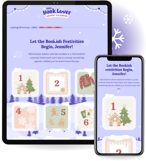 25 days of bookish surprises: From bookmarks and prints to unique games and challenges, each day reveals a new gift just for you.